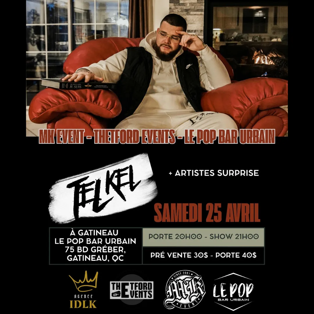 Originaire de Sainte-Hyacinthe, Tel Kel s’impose comme l’une des voix montantes du rap québécois grâce à son authenticité, son style introspectif et sa voix distinctive.
